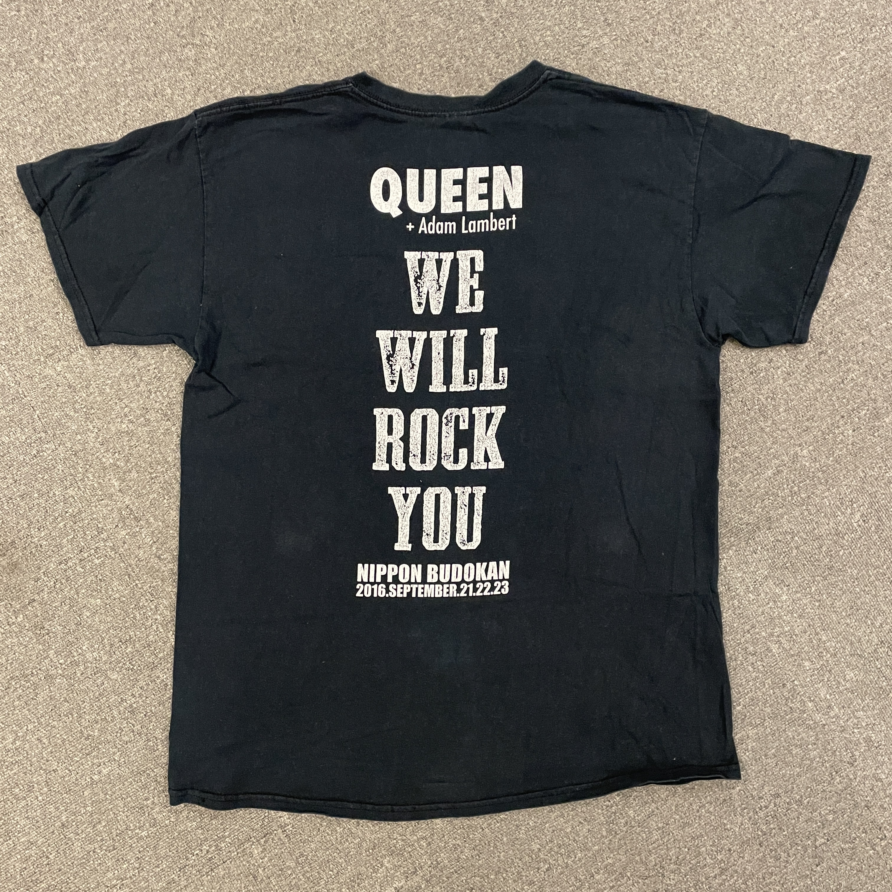 ブライアン・メイ,ロジャー・テイラーにアダム・ランバートがボーカルに加わった2016年日本武道館ライブの記念Tシャツ
